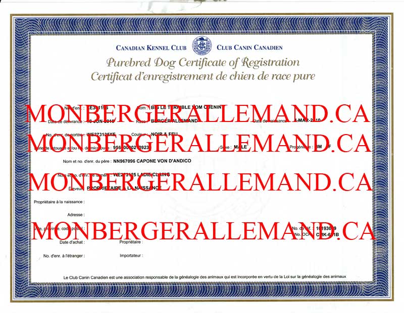 Nom du Père : Capone Von D'andico Nom de la Mère : Ladie Claing Voir son Pedigree : CLIQUEZ ICI