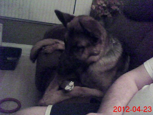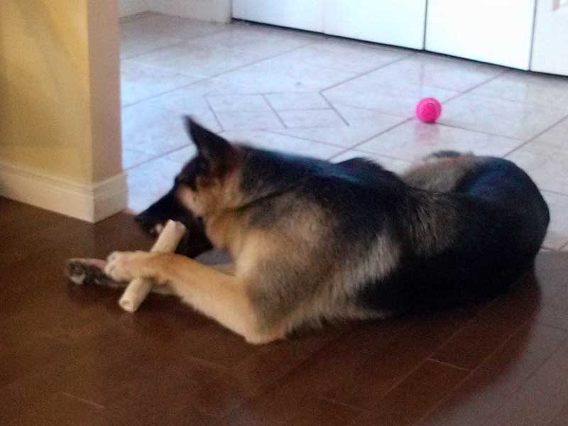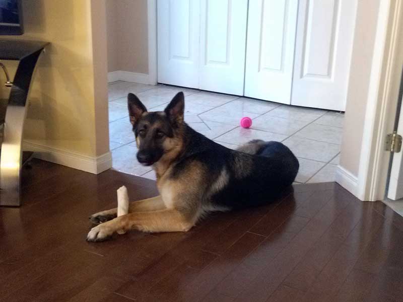 Commentaire du Maitre : Voici quelques photos de mon petit. Il pesait 82,6 livres chez le vétérinaire. Nous avons acheté son traitement révolution. Toujours actif et gardien, il ne manque pas une occasion pour venir jouer avec moi s’est un jeux pour lui.