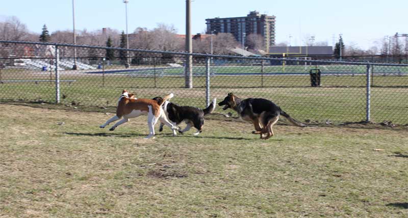 au parc à chien de St-Lambert en Montérégie pour qu'il socialise avec les autres