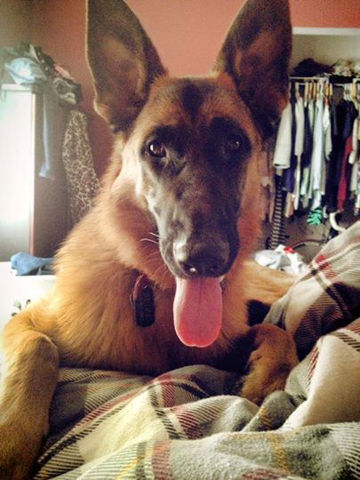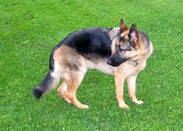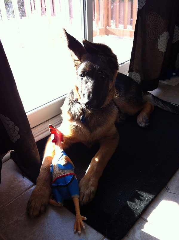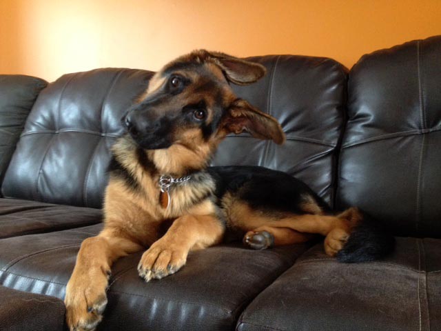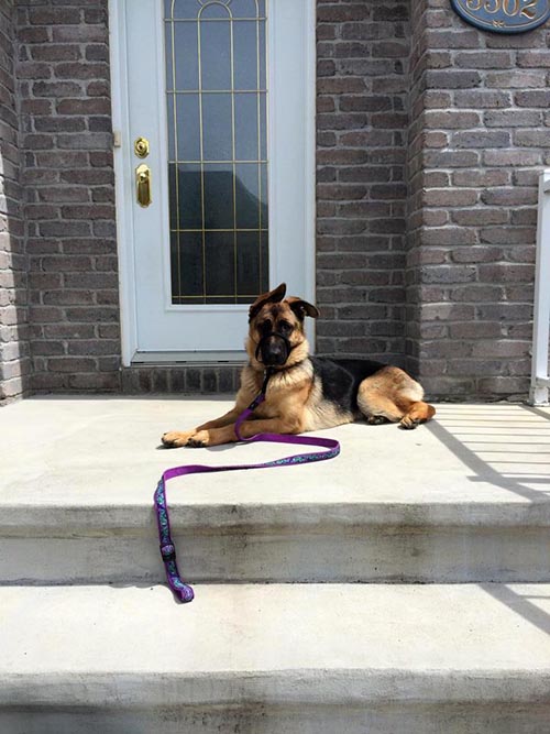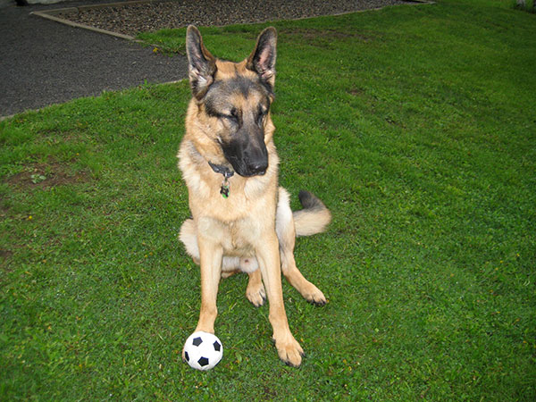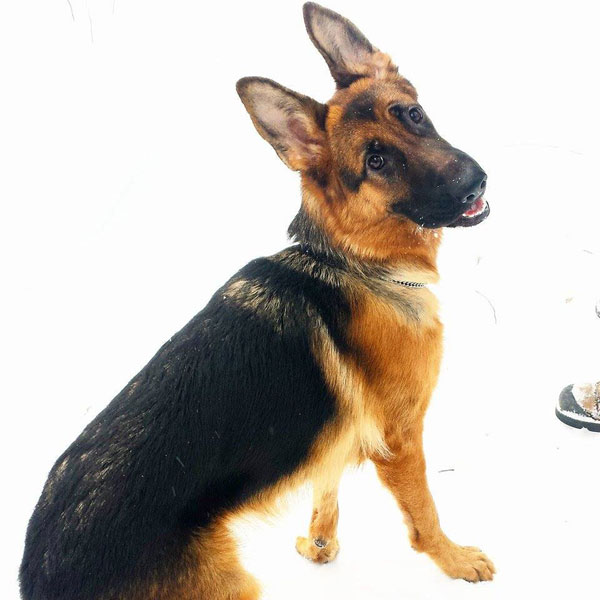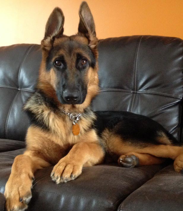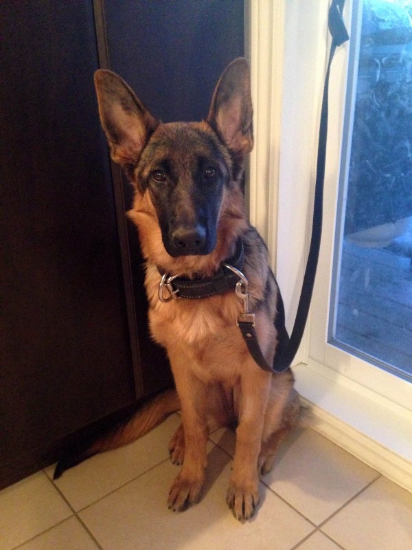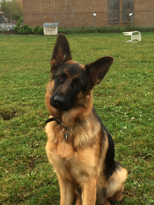 Chipper à 14 mois,  il devient de plus en plus obéissant et intelligent. Il fait tourner les têtes c'est incroyable. Son caractère est fabuleux, il est docile avec tout le monde et tous les autres chiens!  Merci beaucoup je n'aurais pas pu avoir un meilleur chien. Chipper est entier et je suis très prudent de ne pas avoir d'accident tout va bien de ce côté et il est facile de le mettre en pose Berger Allemand!  Je vous envoie une photo.