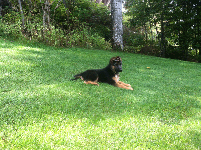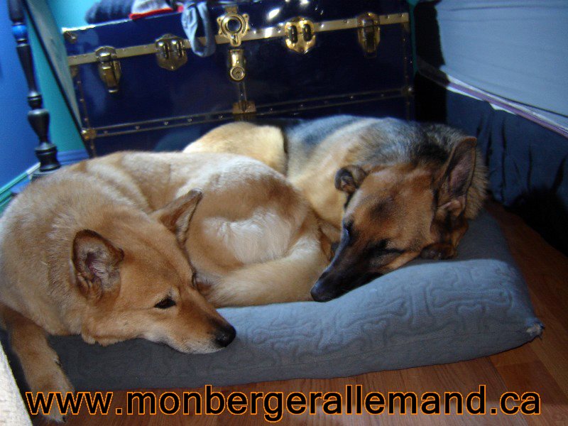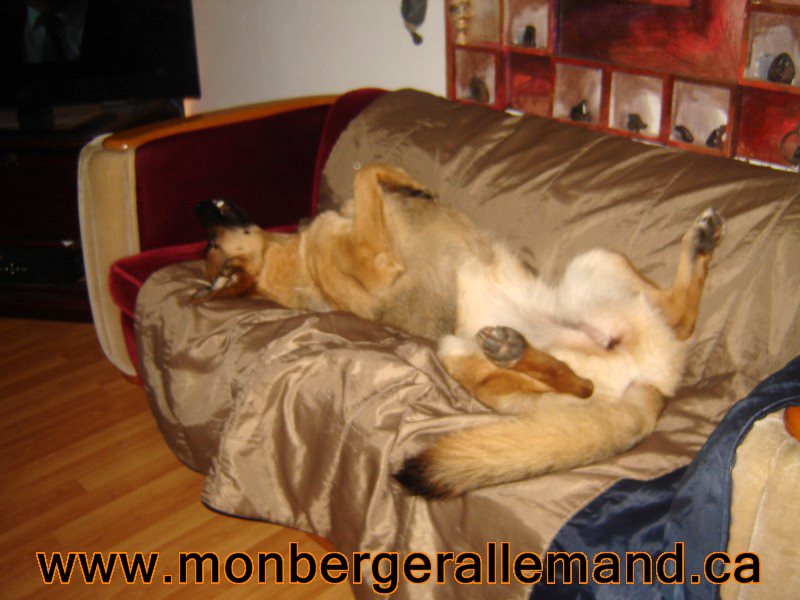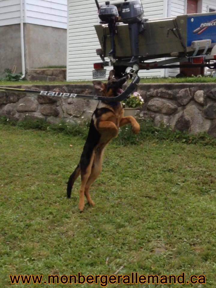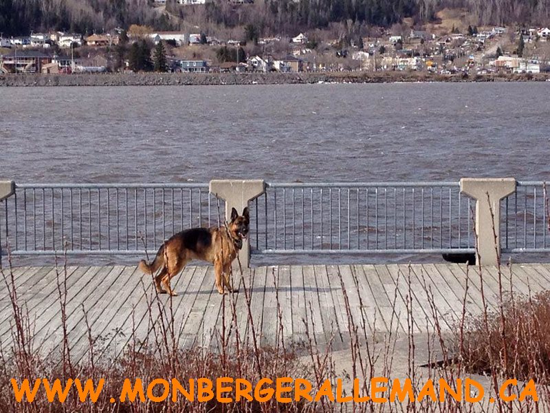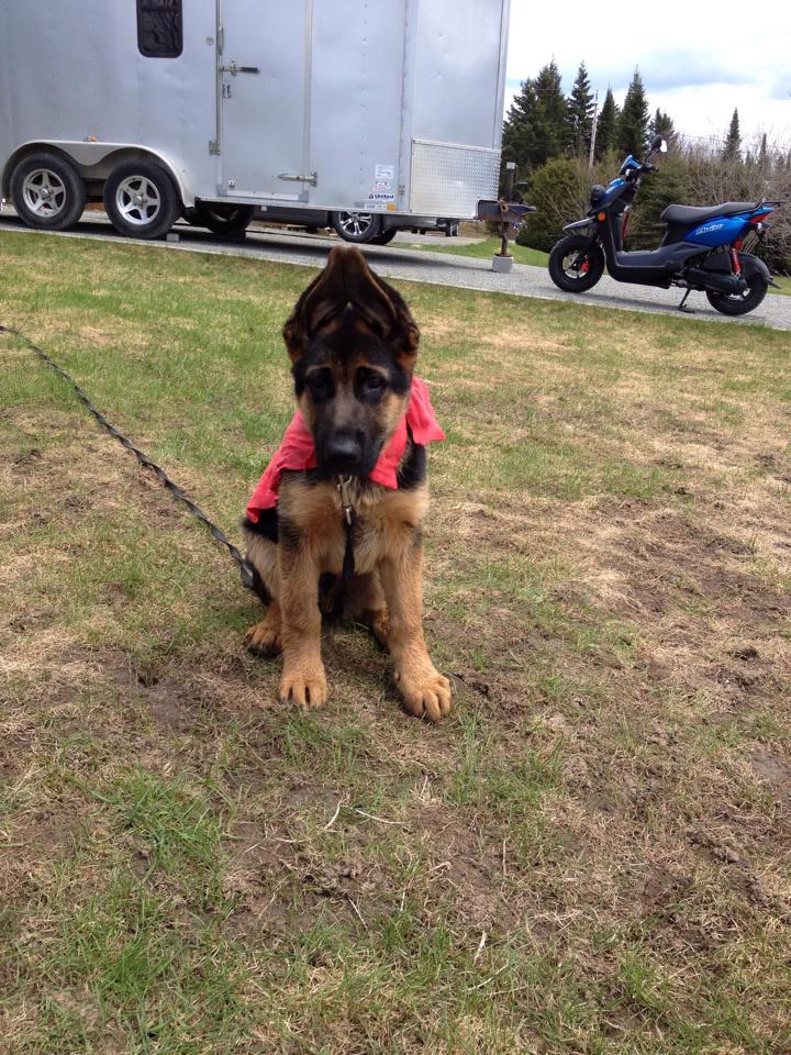 Commentaire du Maitre :  Bonjour a vous, Des nouvelles du lac supérieur, Je vous envoie des photos de moi votre loulou sparkie merci pour tous , Je suis avec ma nouvelle famille depuis  le 1 sept.2014  et bien heureux. Nous somme fière de sparkie il est extraordinaire il a toute les aptitudes qu’on peut désirer chez un chien de travail  il vient avec nous et max au travail tous les jours il sui et prend exemple sur max tous un duo.  Merci pour le bon travail que vous faite ont a besoin de gens comme vous pour redonné les lettres de noblesse au berger allemand