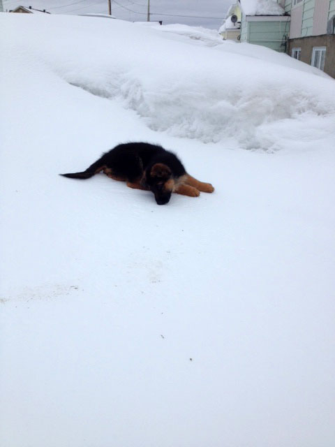 Commentaire du Maitre : Moi et dexter qui profite de notre montagne de neige !!! On l'aime vraiment beaucoup :)