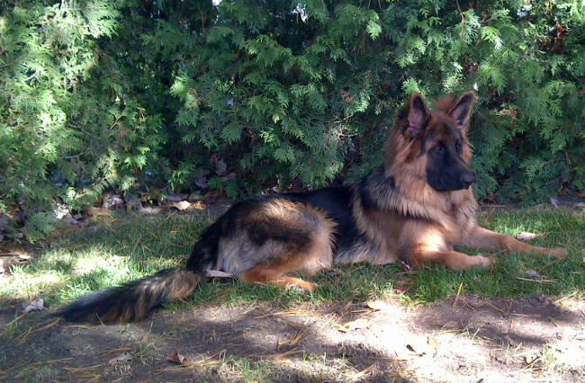 Commentaire du Maitre :  Quelques photos de Flick allias Max fils de Lady et Vidal. Flick a eu 2 ans le 25 mai, un super Berger Allemand
