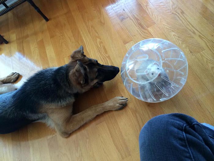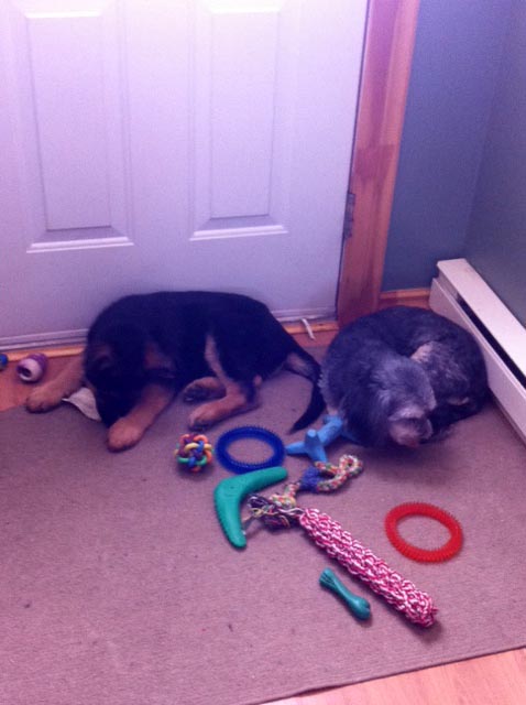 Commentaire du Maitre : Des nouvelles de bébé monstre (: Elle affectionne beaucoup nos pieds, mais pour le reste elle est parfaite ! Aucun malaise, elle s'amuse et cours partout dans la maison. Elle a pleurer deux minutes seulement et c'était à l'heure du dodo dans la cage. Je l'ai depuis moins de 24h et je l'adore déjà littéralement ! Elle a même demandé la porte hier soir !!  P.s.: Mon chat la déteste. Pauvre grosse fille.. Elles vont s'habituer hihii