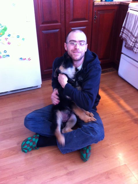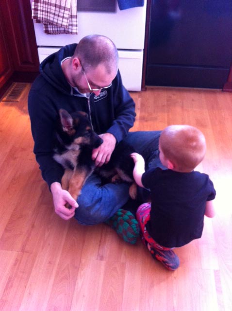 Commentaire du Maitre :   Voici des photos du petit (maintenant grand 40lbs?!?) Shaka qui a maintenant 3mois et demi sur ces photos... Il fait maintenant parti de notre belle famille et il est un chien extraordinaire !! Il est doux, gentil, obéissant, très intelligent, ne jappe pas pour rien et a été Propre presque instantanément.....nous l'aimons beaucoup beaucoup et nous vous remercions encore pour ce beau cadeau de la vie !!